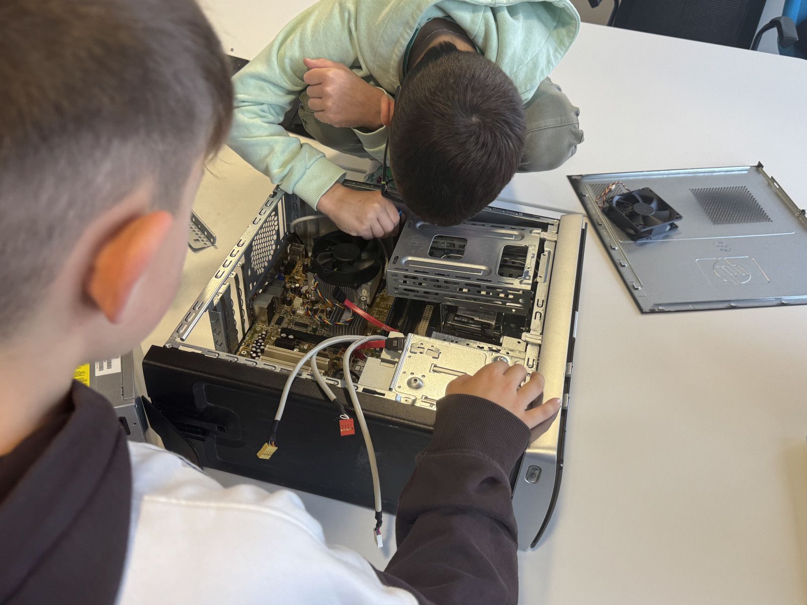 Am Nachmittag wurde es praktisch. Gemeinsam zerlegten die Teilnehmenden einen PC in seine Einzelteile. Dabei standen Aufbau und Funktion der einzelnen Komponenten im Mittelpunkt, sodass sie ein besseres Verständnis dafür erhielten, was im Inneren eines Computers passiert.