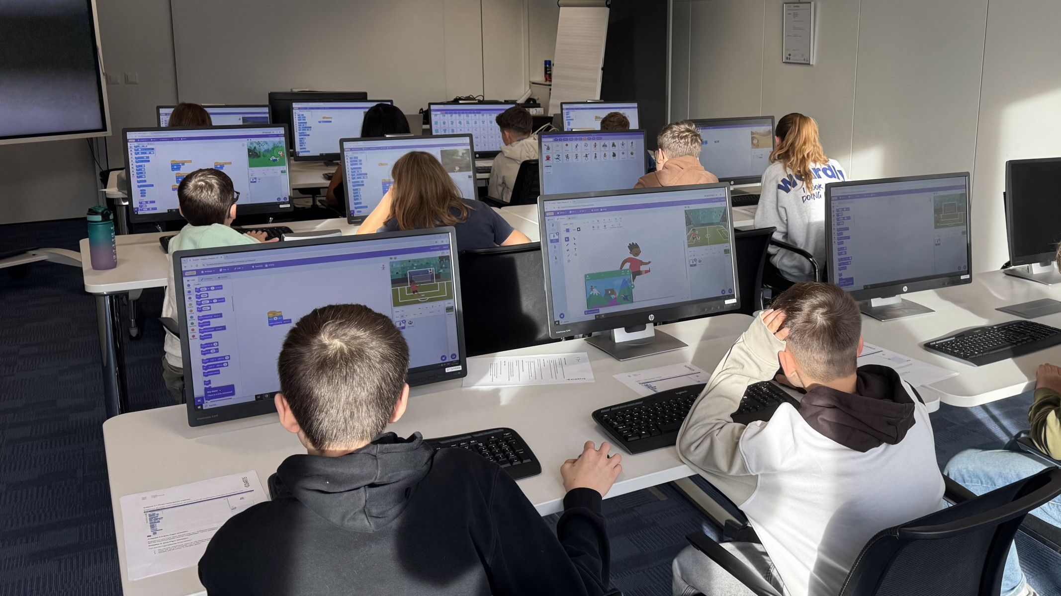 Der Tag begann mit einer Einführung in die Programmierung mithilfe von Scratch. Mit dieser leicht verständlichen Programmiersprache entwickelten die Kinder eigene kleine Projekte und machten so auf spielerische Art ihre ersten Schritte in der IT-Welt.